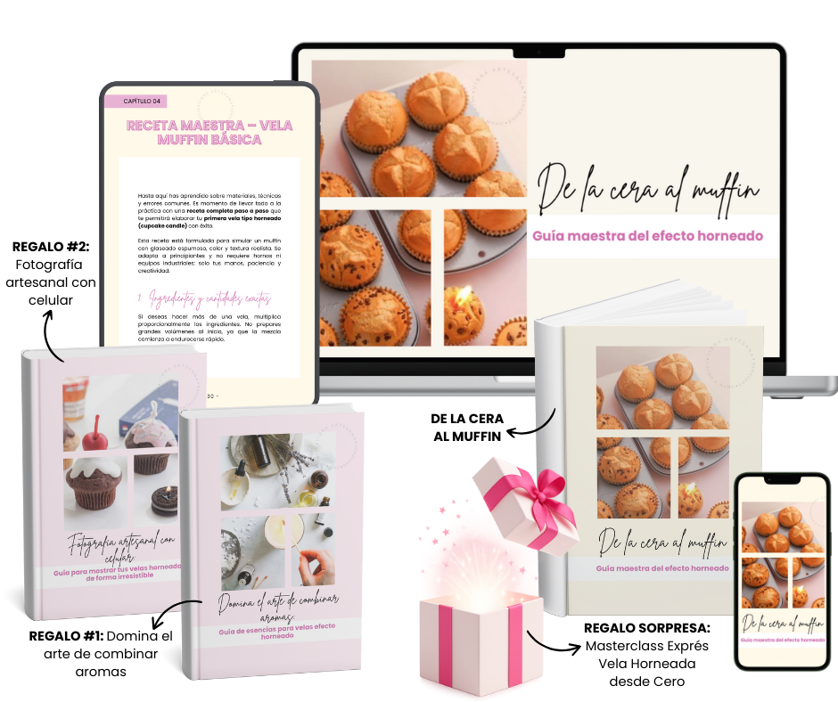 Al adquirir “De la cera al muffin: La guía maestra del efecto horneado” HOY, recibirás 2 regalos exclusivos (valorados en $24 USD) para impulsar tu proceso creativo